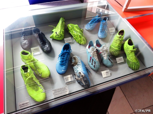 展示ケースに並ぶシューズから、各選手の戦いの痕跡を感じとることが出来ます。