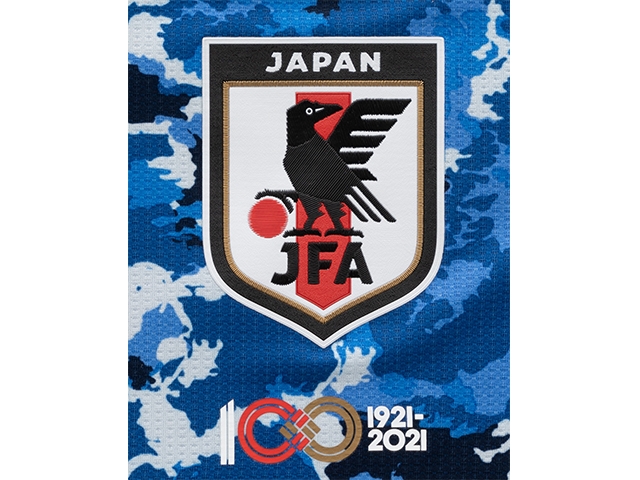 3月25日(木)に開催されるSAMURAI BLUE(日本代表)の国際親善試合より、選手たちが100周年記念バッジ付ユニフォームを着用します。このユニフォームは、SAMURAI BLUE、なでしこジャパン(日本女子代表)をはじめ、各カテゴリー、年代別男女の日本代表チームが、2021年の年間を通して着用予定です。