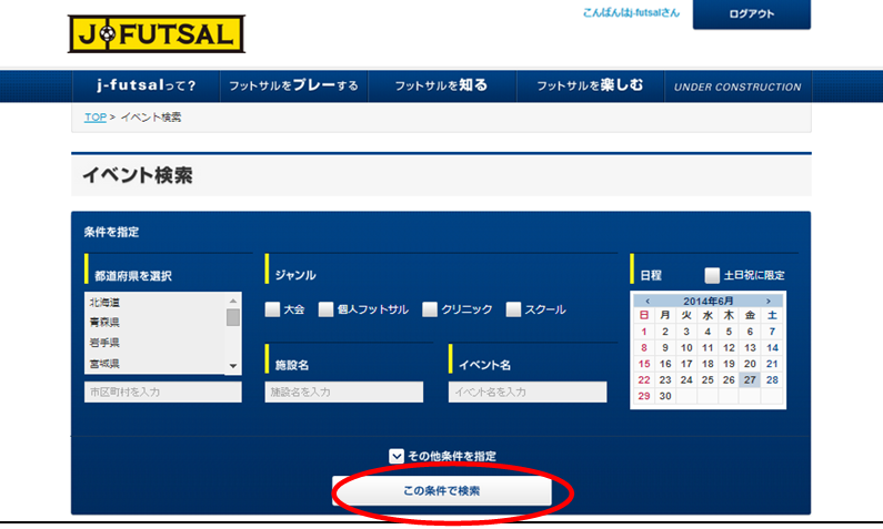j-futsalでは、身近なフットサルイベントを検索することができます。