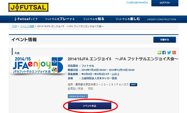 【j-futsal連動企画】 JFAエンジョイ5に参加しよう!j-futsal「イベントエントリー機能」の使い方