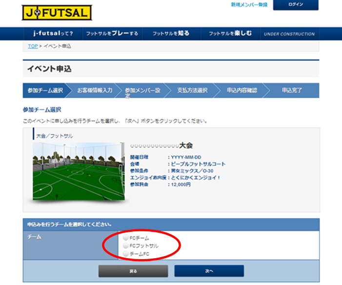 手順その3「イベント申込・参加チーム選択」