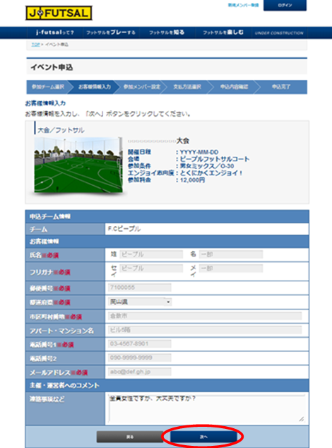 ・ステップ4 イベント申込・お客様情報の入力