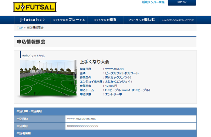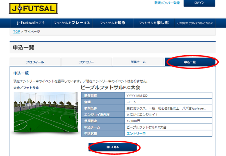 j-futsalのイベントエントリー機能を利用し参加申込を受け付ける大会では、チーム代表者の方がマイページから、簡単な操作でエントリーすることができます。