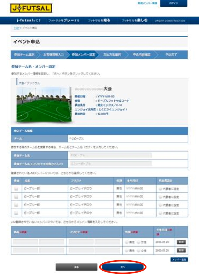 手順その5「イベント申込・参加メンバー入力」