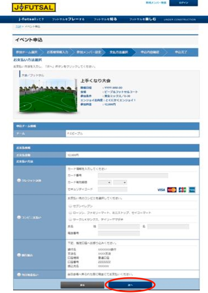 手順その6「イベント申込・お支払い方法入力」