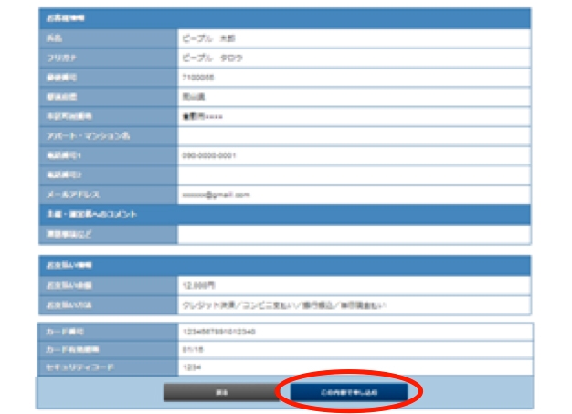 (1)お申込内容をご確認いただき、よろしければ「この内容で申し込む」をクリック。