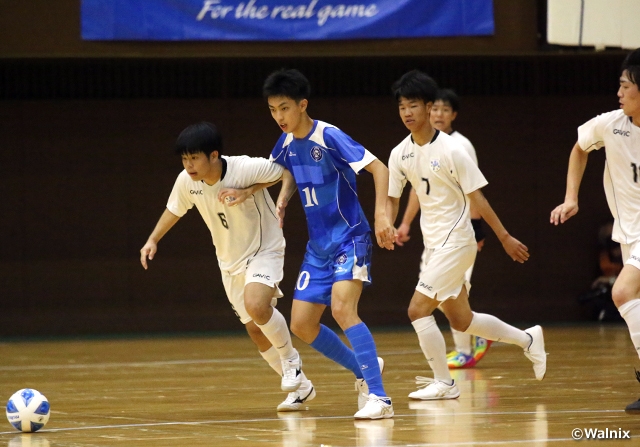 地元の京都共栄学園高校は、初日を終えて自分たちがどう戦えばいいのかが明確になり、開始早々からゴールラッシュを見せます。FP後藤寛斗選手が試合開始1分の先制ゴールを含めて4ゴールを記録。大会屈指の個の力を示しているFPガブリエル・エンリケ選手も、最後尾でバランスを取りながら、機を見た攻撃参加で2ゴールを挙げる活躍を見せて10-0で北海道帯広柏葉高校に大勝。決勝ラウンド進出を決めました。