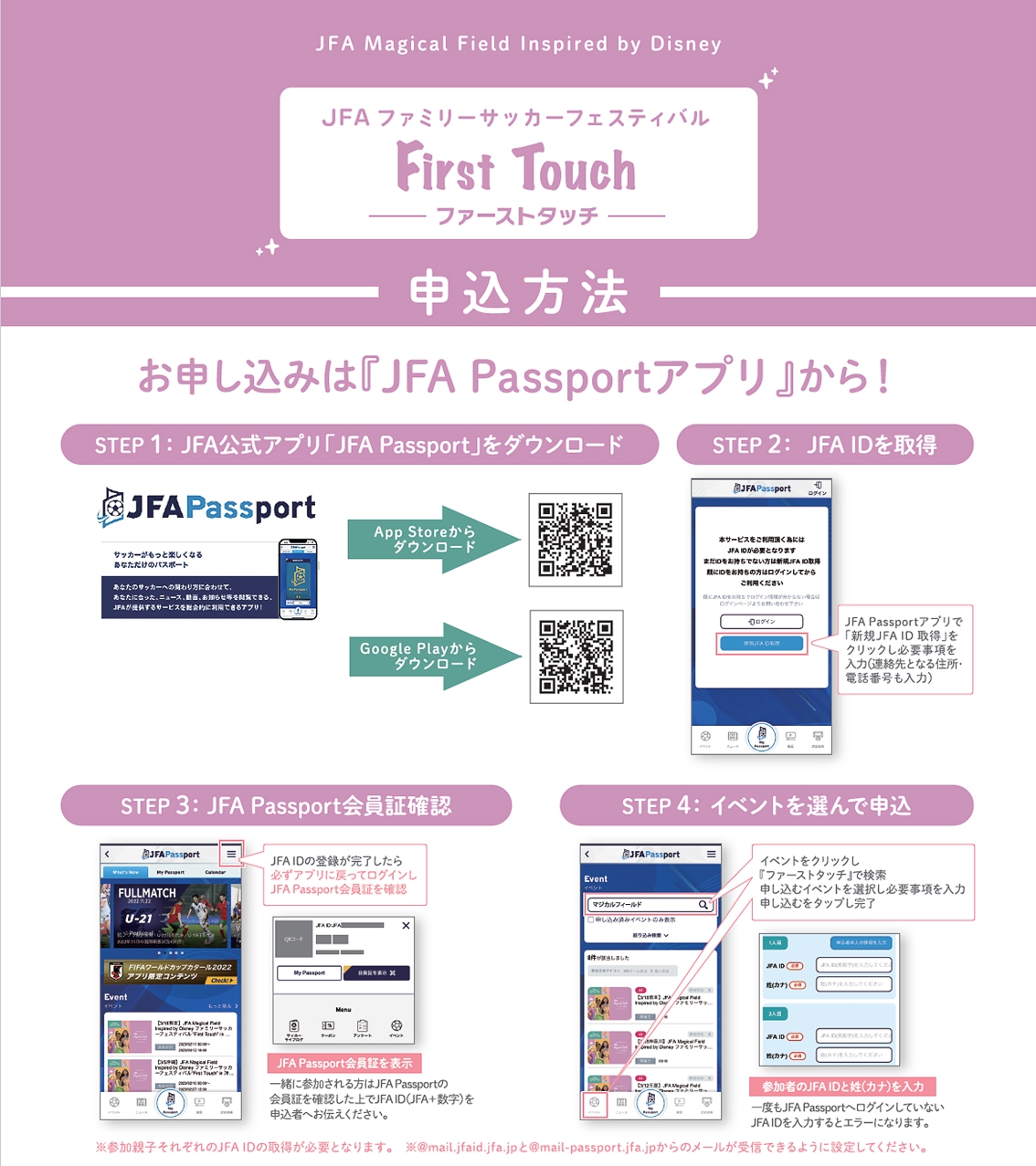 お申し込みは JFA 公式アプリ「JFA Passport」の「イベント」から!(アプリへ遷移いたします。)