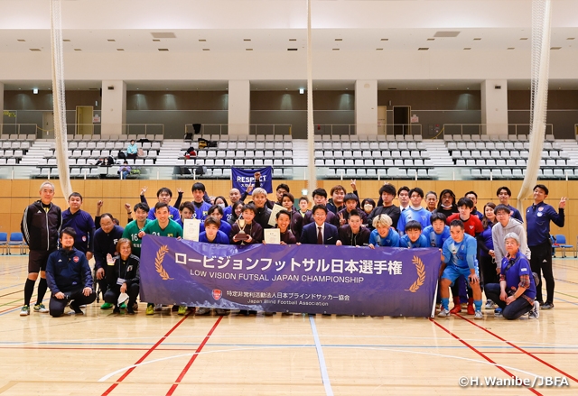 NPO法人日本ブラインドサッカー協会は2023年1月7日(土)、東京/墨田区総合体育館で「第17回 ロービジョンフットサル日本選手権」を開催しました。試合は3チーム出場の総当たり戦で、CA SOLUA葛飾が2勝0敗で日本選手権初優勝を果たしました。大会MVPはCA SOLUA葛飾の松本光平選手が受賞しました。会場ではロービジョンフットサル日本選手権過去最多の観客数となる85名の方にご観戦いただきました。