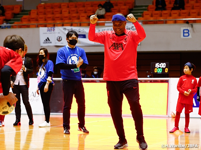 また、会場ではLFCインターナショナル・アカデミー・ジャパンに通う子どもたちなどを対象とした「ブラインドサッカー体験会 presented by アクサ」が開催され、元リヴァプールFCのジョン・バーンズ氏と、タレントでブラサカ応援メンバーでもある、じゅんいちダビッドソン氏にゲスト参加いただきました。