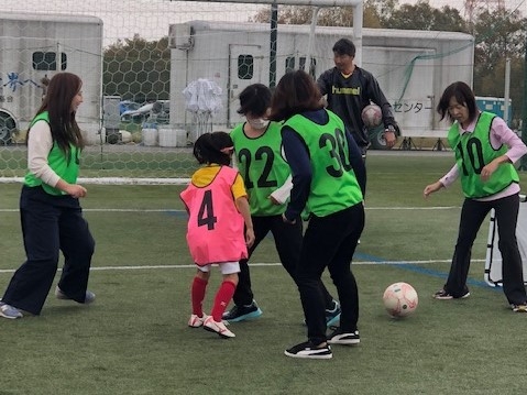 | 担当者のコメント | 初めて参加された初心者の方にサッカーの楽しさ、更には難しさも肌で感じていただけました。又、初心者の方と経験者の方とが一緒にプレーして交流を深めることができました。何よりも小雨交じりの天気にも関わらず全員が楽しそうにプレーしてくれた事が一番です。 |