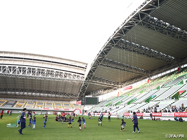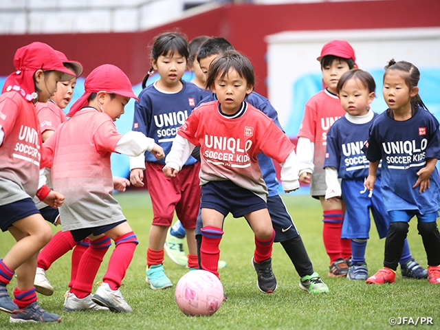 日本サッカー協会は兵庫県サッカー協会とともに、6歳以下の未就学児を対象としたサッカーフェスティバル「JFAユニクロサッカーキッズ」を12月12日(土)、ノエビアスタジアム神戸で開催しました。冬晴れの中、409名のサッカーキッズが集まり、一生懸命ボールを追いかけました。