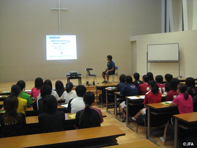午前中にはキッズリーダー養成講習会を実施し、女性24名が受講しました。プレーヤーとしてだけではなく、指導者として、母親としてのサッカーの関わり方について考えるきっかけとなりました。