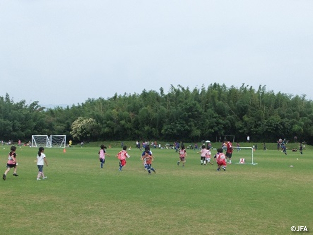 JFAキッズサッカーフェスティバル 徳島県の吉野川井山川町バンブー公園に、約500人が参加!