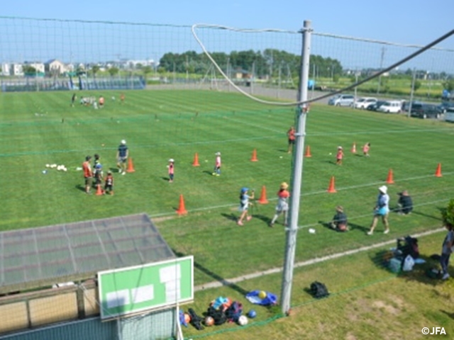 JFAキッズサッカーフェスティバル 北海道の恵庭市ルルマップ自然公園ふれらんどに、約90人が参加!