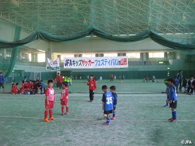 10月25日(土)、26日(日)に山形県天童市にある「山形県総合運動公園 屋内多目的コート」にて約1,250名が参加し、JFAキッズサッカーフェスティバルを行いました。