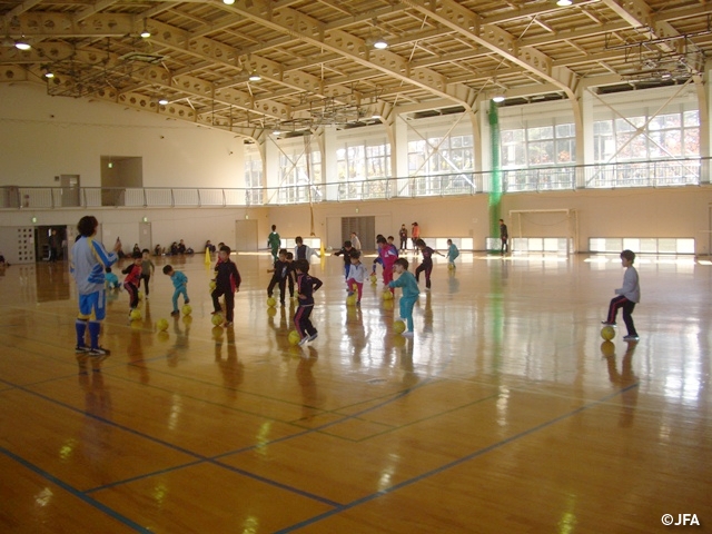 11月3日(月・祝)に山形県尾花沢市にある「尾花沢市総合運動公園 体育館」にて約40名が参加し、JFAキッズサッカーフェスティバルを行いました。