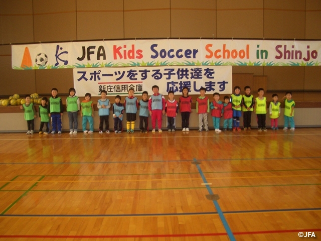 JFAキッズサッカーフェスティバル 山形県尾花沢市の尾花沢市総合運動公園 体育館に、約40人が参加!