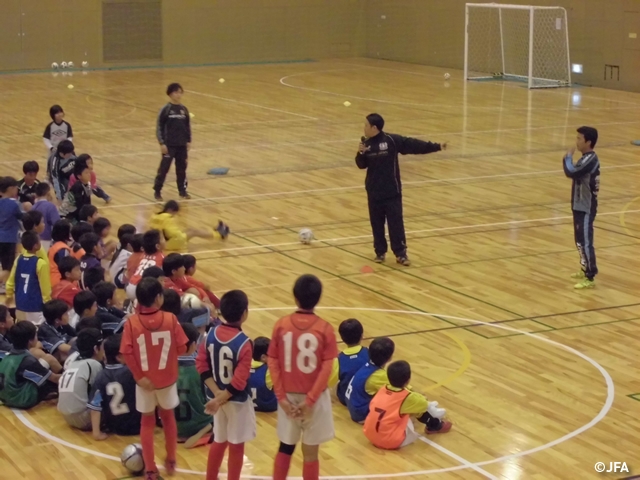 JFAキッズサッカーフェスティバル 広島県府中市の府中市総合体育館(ウッドアリーナ)に、約200人が参加!