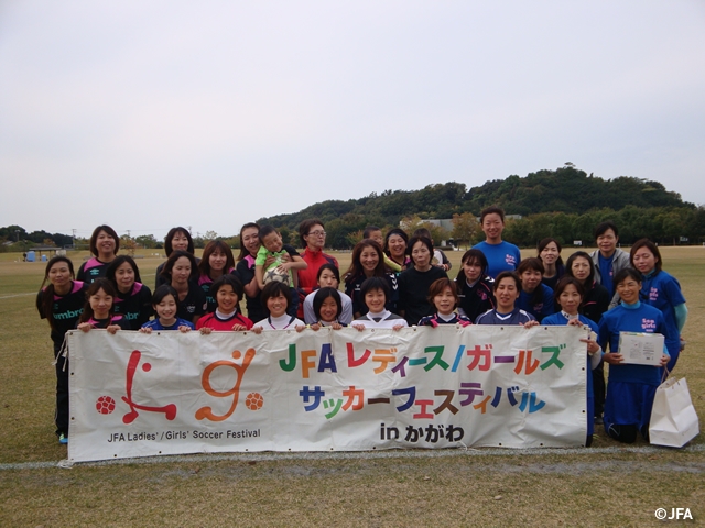 JFAレディースサッカーフェスティバル 香川県坂出市の瀬戸大橋記念公園球技場に、約40人が参加!