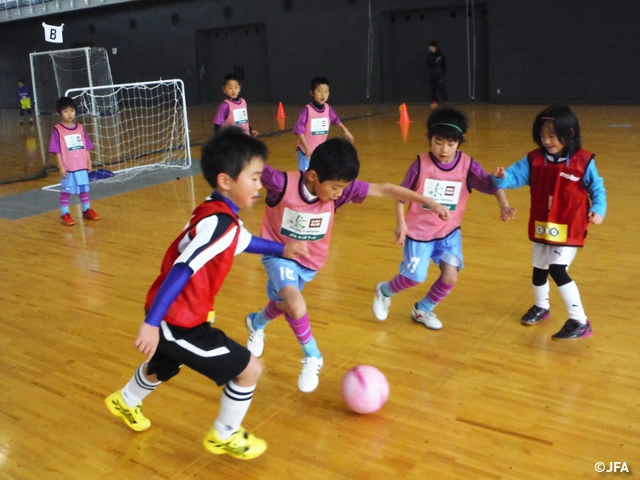 JFAキッズサッカーフェスティバル 岩手県久慈市の久慈市民体育館に、約170人が参加!