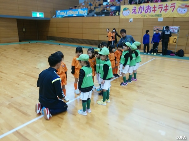 JFAキッズサッカーフェスティバル 山形県天童市の山形県総合運動公園 屋内多目的コートに、約350人が参加!