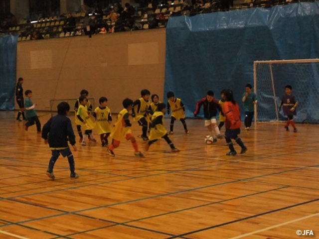 JFAキッズサッカーフェスティバル 宮城県石巻市の石巻市総合体育館に、約120人が参加!