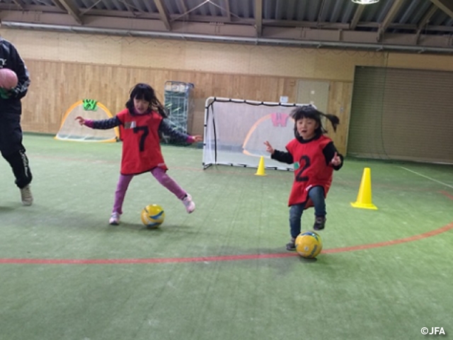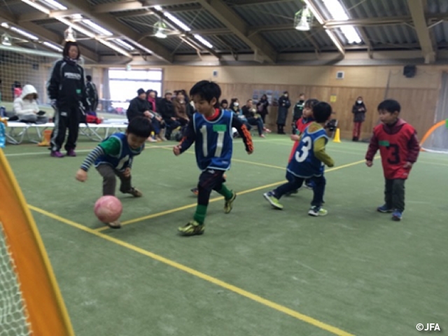 JFAキッズサッカーフェスティバル 長野県塩尻市の塩尻市立桔梗小学校体育館に、約70人が参加!
