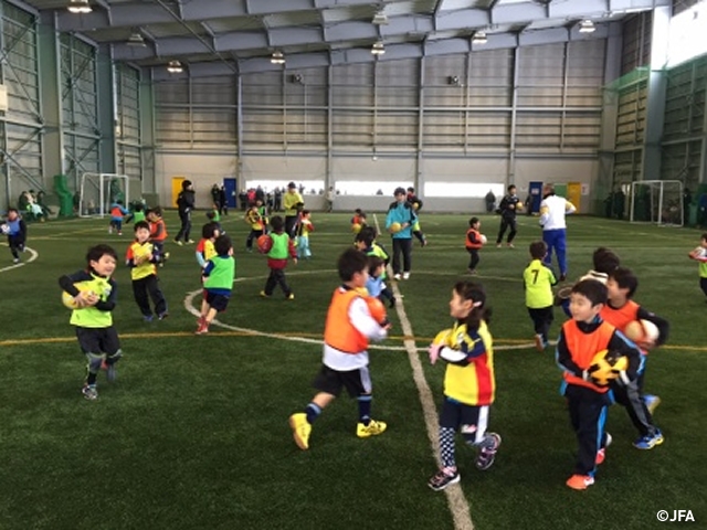 2月21日(土)に北海道札幌市にある「札幌サッカーアミューズメントパーク」にて約140名が参加し、JFAキッズサッカーフェスティバルを行いました。