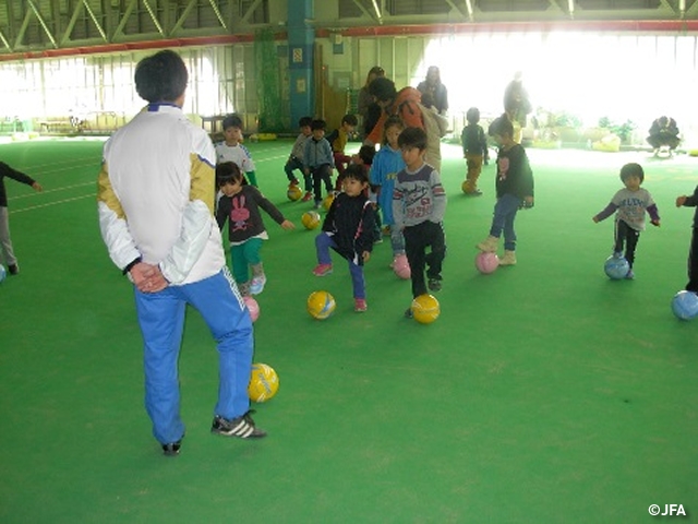 2月21日(土)に長野県小諸市にある「スパーク小諸」にて約60名が参加し、JFAキッズサッカーフェスティバルを行いました。