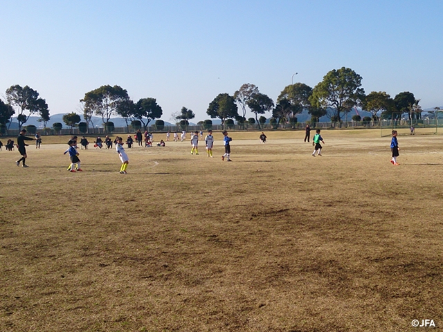 JFAキッズサッカーフェスティバル 宮崎日向市のお倉ケ浜総合公園多目的広場に、約200人が参加!