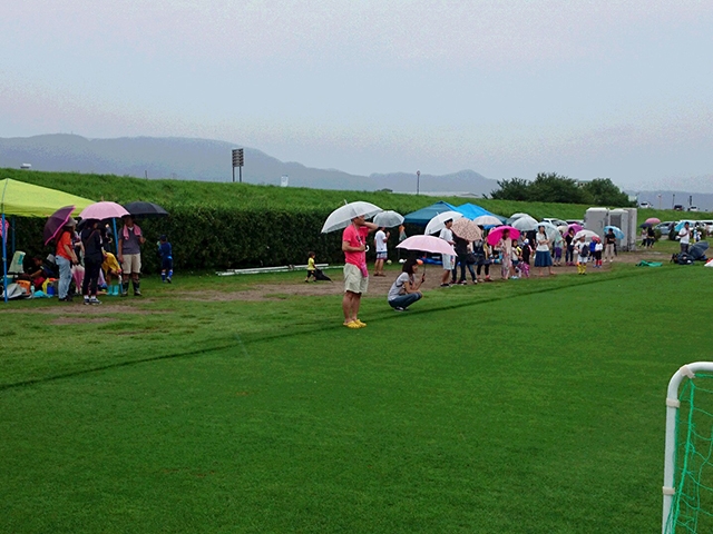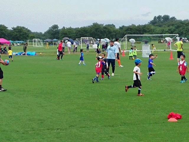 台風の影響で雨の降る中での開催となりましたが、天然芝の上で楽しそうにボールを追いかけている子供たちの姿を見てうれしく思いました。
