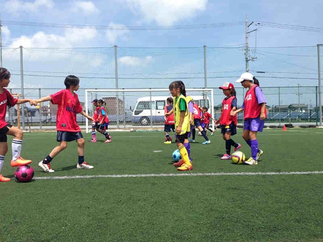 滋賀県の子どもからママさんまで、一般参加の初心者やチーム参加者もいるなかで、経験年数に応じて全員が楽しめるような企画を行いました。企画前半では、いつも教わる側の大学生がコーチとなって次世代の選手にコーチングをして、技術だけでなくサッカーの楽しさを伝承していく意義深いイベントができました。特に、小学生の少女たちは大学生のお姉さんの指導がとても楽しかったようです。台風一過で真夏日のなかでも、サッカーを通じた交流を楽しんでくれた皆さんの姿がとても印象的でした。滋賀県の女子サッカーが広く普及し盛んになる良い機会になると思います。