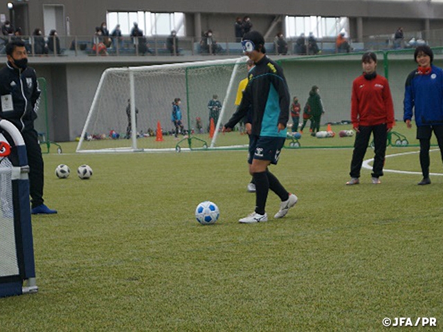 3月という時期、また降雪地域であることを踏まえ、Jヴィレッジの全天候型練習場での開催となり、参加選手、運営スタッフ、保護者等で約120名の来場者がありました。カテゴリーごとにグルーピングをして、サッカー教室ではボールテクニックや1vs1、スモールゲームを、そしてアトラクションではキックターゲット・フットゴルフ・ウォーキングフットボール・ブラインドサッカー体験を楽しんで頂きました。選手たちは初めて会った同士にも関わらず、コミュニケーションをしっかりとって楽しんでいる姿を見ることができ、改めてサッカー、スポーツの文化的価値を確認することができました。