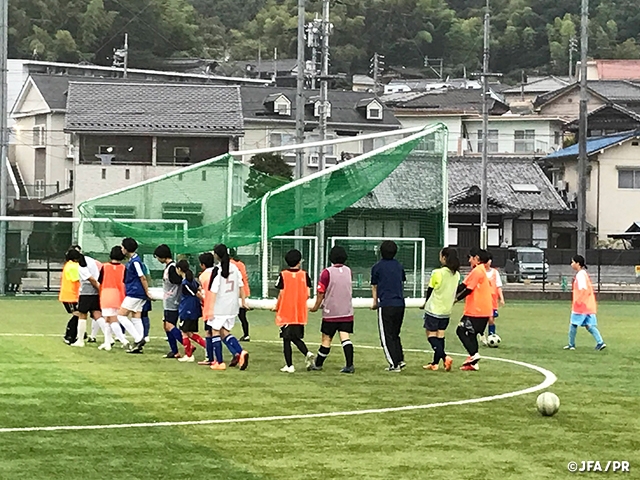 初回のテーマは「攻防」で、その中で「自分で判断してアクションする」「勝負に勝つ」として行いました。最初こそ判断の部分で戸惑いも感じられましたが、徐々に選手が自らの判断で行動するようになり、勝負にもこだわる姿勢が見られました。何より、「彼女たちのサッカーが大好き!」という表情を見せ、プレーをしてくれたことが、大きな成果だと感じています。