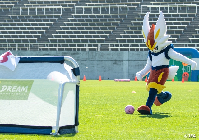 長野県での開催は初めてとなります。参加した子どもたちは、綺麗に手入れされたピッチの上で思いっきりサッカーを楽しんでいました。また、ゲームに負けて悔しいと涙する子もいましたが、チームの仲間同士で励まし合い、もっと上手になりたい!と一生懸命にボールを追いかけていました。会場には、近隣のユニクロ店舗スタッフの方々もお手伝いに来ていただき、またJFAキッズアンバサダーのエースバーンも参加して大いに会場を盛り上げてくれました。