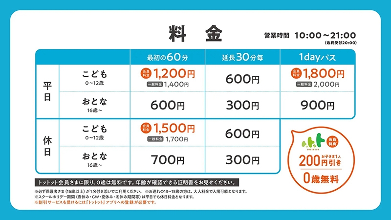 (料金表・ちきゅうのにわ幕張新都心店)