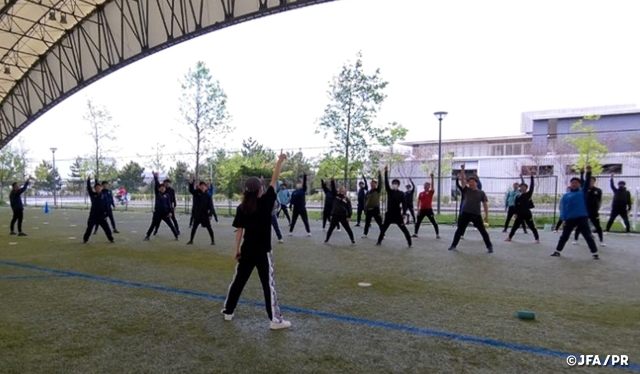 2日目には、EXILE TETSUYAさん監修のもと開発した「クラッキ!ダンス」を、プロのダンスインストラクターに教えてもらい全員で練習も行いました。「クラッキ!ダンス」はJFAユニクロサッカーキッズや各種フェスティバルでウォーミングアップとして取り入れられています。