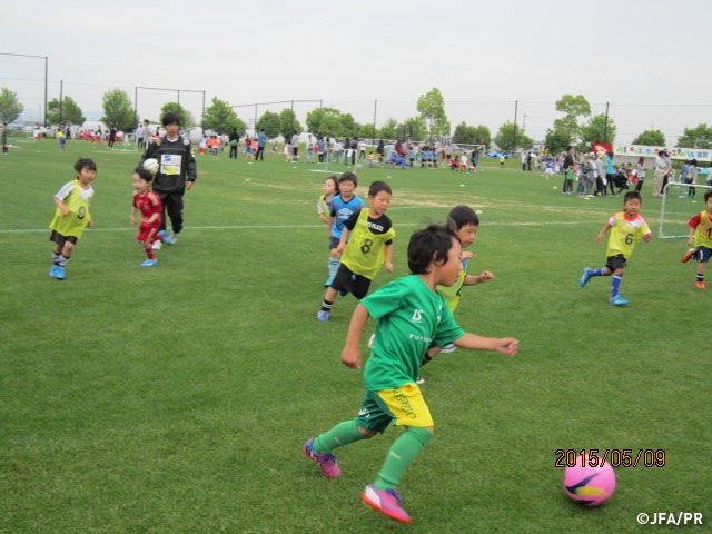 5月9日(土)に滋賀県守山市にある「ビッグレイク野洲川歴史公園サッカー場」にて470名が参加し、JFAキッズ(U-6/8/10)サッカーフェスティバルを行いました。