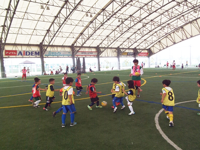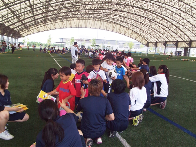 JFAキッズフェスティバルとして、大阪南部のJ‐GREEN堺にて開催をいたしました。少し天候が心配されましたが、屋根付きフットサル場の使用で、無事に活動をする事ができました。今回は、親子での参加型の開催やリーダー養成講習会の実施などいつもと違った事業運営をする事ができましたので、今後もまた新しい内容での企画開催に向けて、しっかりした準備とその努力をしていきたいと思います。
