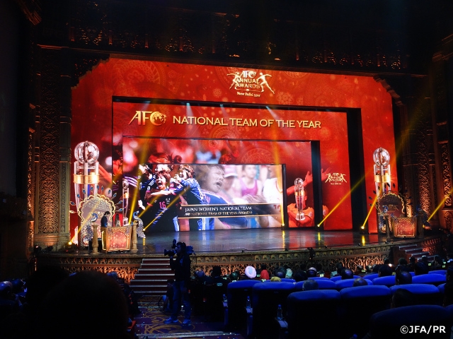 アジアサッカー連盟(AFC)は11月29日(日)、インドのニューデリーにおいて「AFCアニュアルアワード2015」を開催し、日本はインスパイリング協会賞をはじめ、年間最優秀コーチ(女子)を高倉麻子U-19日本女子代表監督が4年連続となる受賞、また年間最優秀代表チーム(女子)になでしこジャパン(日本女子代表)、年間最優秀フェアプレー協会などあわせて計7部門で受賞しました。