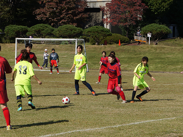 2003年以来続けて同じ場所で実施しています。一昨年は雨で中止となってしまいましたが、昨年今年と好天に恵まれ、暑いくらいの秋の日差しの中、一日楽しむことができました。いつもリーグで顔を合わせるメンバーから、このフェスティバルで顔を見る人、中学生から60代まで、本当に幅広い世代に参加してもらっています。なかなか普及につながらないかもしれませんが、多くの女性にサッカーを楽しんでもらうという意図は大いに達成できていると思います。これからも長く続けて生きたいと思っています。よろしくお願いいたします。