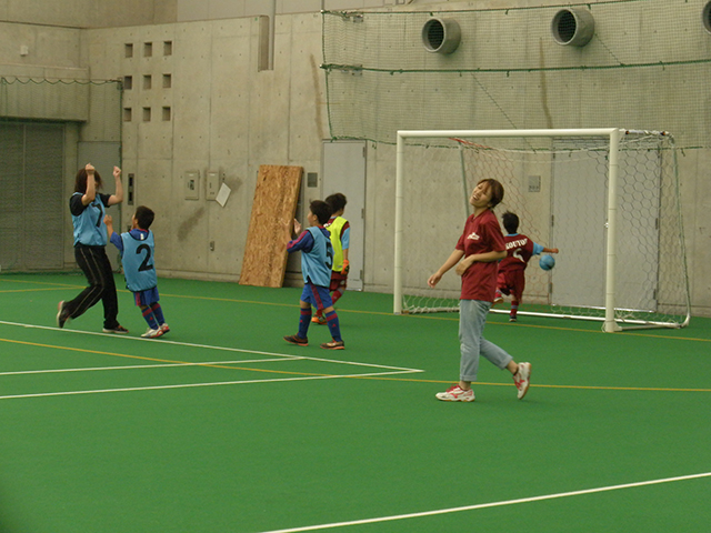 何回行っても楽しそうです。お母さんがボールを取られても転んでも、子どもがシュートを決めても歓声の連続でした。スタッフの審判もニヤニヤしいながら、笛を吹いていました。