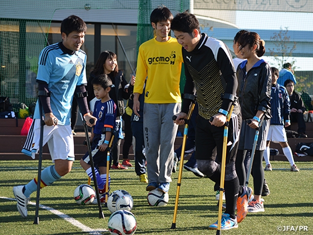 JFAでは、だれもが、いつでも、どこでも、サッカーを楽しめるようにする「グラスルーツの推進」のため、障がい者サッカーの取り組みを後押ししています。2015年4月22日(水)には、7つの障がい者サッカー団体をメンバーに迎えて、第1回障がい者サッカー協議会を開催し、障がい者サッカーを統括する組織の設立、各団体の法人化のサポート、そして各種事業の協働について検討を進めていくなど、障がい者サッカーのさらなる普及を推進しています。