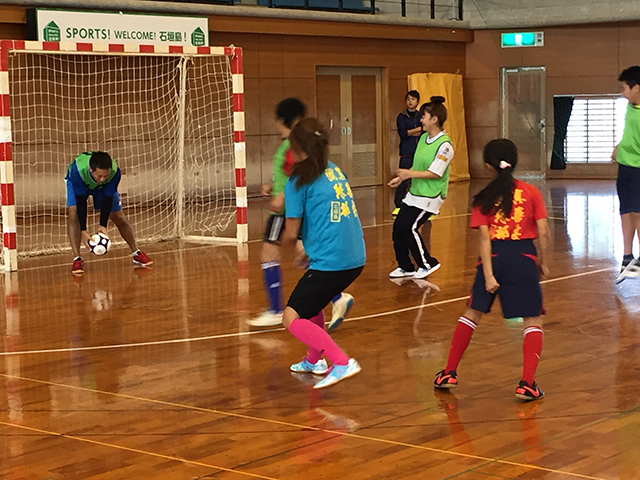 今回は、沖縄県サッカー協会フットサル委員会の皆さんと八重山サッカー協会が協力してファミリーフットサルフェスティバルを開催しました。離島での開催ということもあり、荷物の搬入、スタッフの手配等厳しい面はありましたが、石垣に住んでいる方々がフットサルをプレーする場を与えていただいて大変感謝しております。また、コート設営やフットサルの審判の心構えなど、多くのことを学ぶことができました。