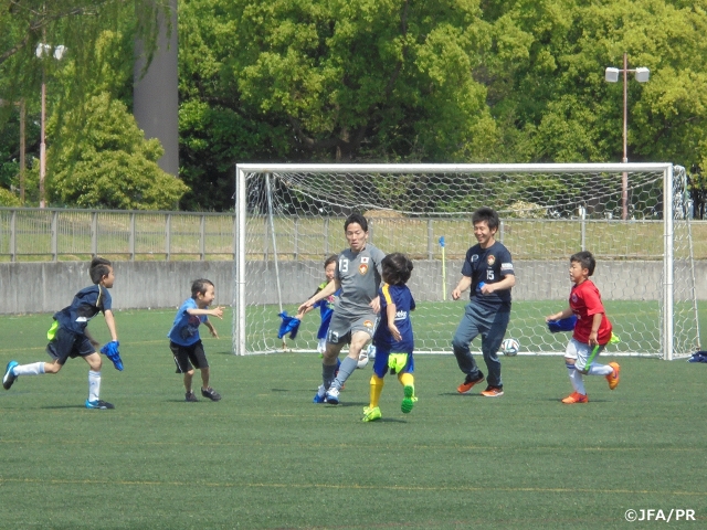 今日は、このイベントのために来ました。自分の担当は小学校低学年の子ども達でした。毎回、参加しているのですが、学校で普段からサッカーをしている為か、毎年子ども達の技術が向上してきており驚かされます。将来性のある子供が増えているように感じます。子ども達に教えることは勿論簡単ではありませんが、ゆっくりしっかり向き合うことが大切だと考えています。