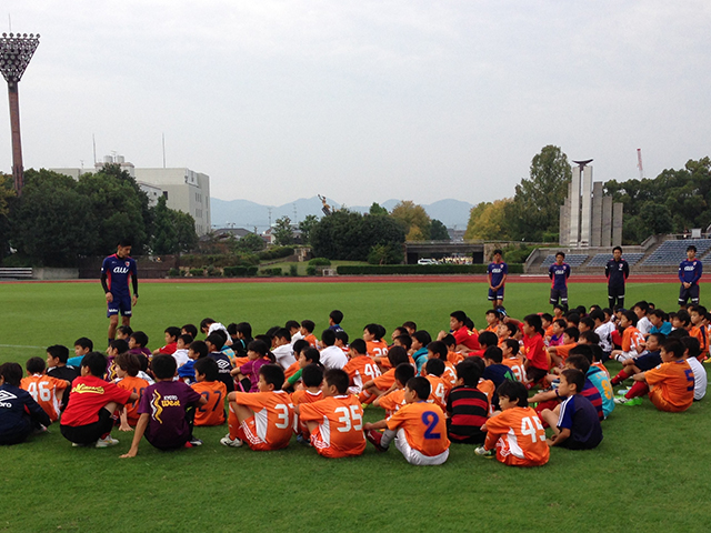3会場に分かれ、ジュニア・キッズサッカー教室、女子ミニゲーム、シニアフェスティバル、Jリーグ観戦など、さまざまなイベントを実施しました。スポーツ会館では、審判委員会によるビデオ講習、京都サンガF.C.育成部長池上正氏による指導者講習に加え、今回初めて京都サンガF.C.山瀬功治選手の奥様である山瀬理恵子氏によるジュニアアスリートのための栄養管理講習を行いました。