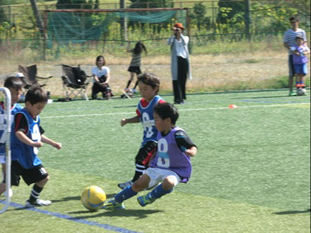 他チームの子どもたちと対戦形式でサッカーの試合をするのが初めての子供たちだったが一生懸命ボールを追う姿が輝いていた。