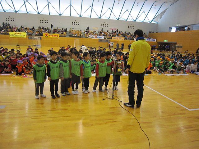 試合形式で園児を対象に楽しいフェスティバルを開催しました。午前中に予選リーグを実施し、午後に決勝トーナメントを実施しました。
