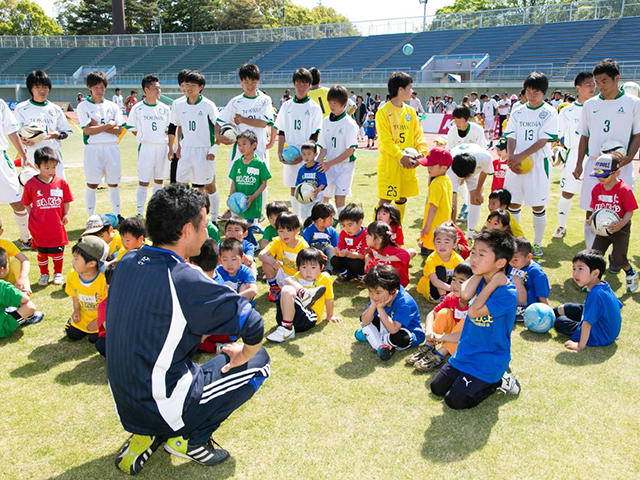 今回のフェスティバルは、参加の幼稚園児および保育園児と、あらかじめキッズリーダー養成講習会を修了した常磐大学高校サッカー部の高校生とのサッカー交流活動として開催いたしました。キッズたちは高校生と楽しく活動していました。高校生にとってはいろいろな気づきを得ることができました。開催に尽力していただきました関係のみなさま、ありがとうございました。
